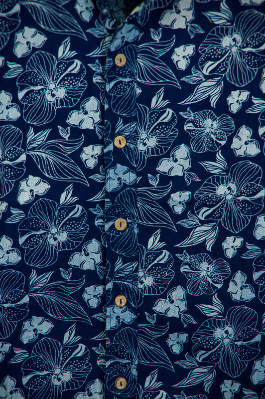 Line drawing Indigo Shirt - round collar - is backordered and will ship as soon as it is back in stock.